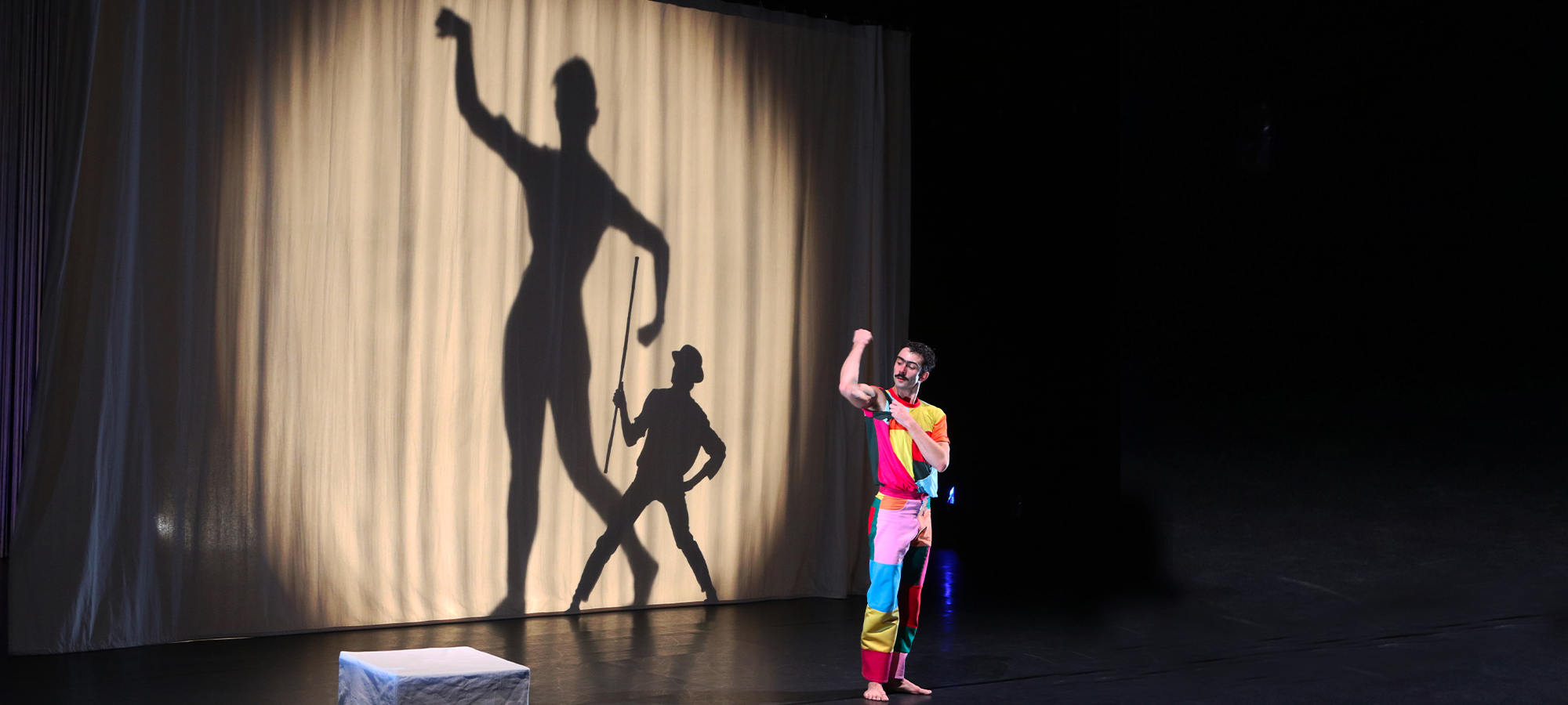 Car le personnage de Madame Muscle est un point d’entrée dans l’anatomie : les membres, leurs segments, les articulations, la peau, son élasticité, la tête et le poids des idées… sont autant de guides dans les pages d’un spectacle qui compose une lecture du corps basée sur une approche dansée, joueuse, vive et poétique.