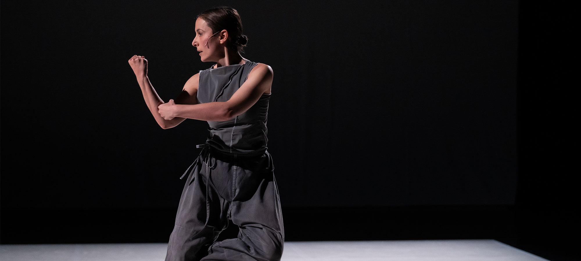 Le Kata, art du combat solitaire en karaté, codifie et enchaîne des techniques contre des adversaires imaginaires. 26 suites de gestes, comme les lettres d’un alphabet, déroulent une quête du geste parfait. En faisant l’expérience de cette pratique, de ses significations formelles et symboliques, Anna Chirescu compose une forme en solo irriguée par les idées de transmissions, d’imaginaires et d’histoires personnelles. Une tentative de cartographier les signes, les paroles, la mémoire. Elle se souvient que, par la pratique de cet art martial, son père s’émancipa de la dictature communiste en Roumanie en 1980. Entremêlant danse, archives personnelles, exploration vocale et costumes, l’artiste convoque au présent, un passé et des récits à travers lesquels l’intime se partage et se fait politique.