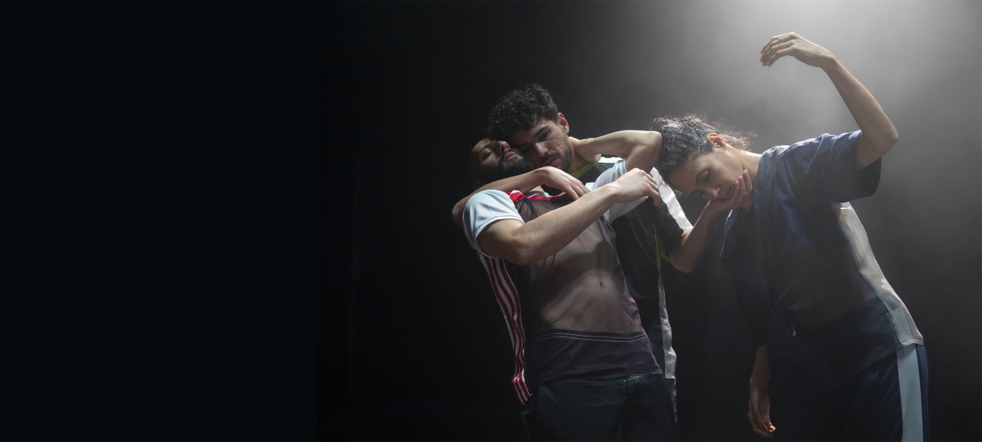 Ni Ni Ya Mo Moc’est la berceuse qui m’a vu grandir. C’est aussi la première chose à laquelle je pense en lien à mon héritage arabe. Ici je ne raconte pas le Maroc, je ne dépeins pas sa culture, mais j’empoigne enfin les traces qu’il m’a laissé. À partir de ce souvenir intime et poétique partagé avec son père, Guilhem Chatir nous immerge dans les projections et les fantasmes nés au creux de cette voix. Il décline, avec ses partenaires Karima El Amrani et Bilal El Had, les rituels d’endormissement qui accompagnent le glissement vers le sommeil. À mi-chemin entre douceur infinie et intranquillité vertigineuse, entre réalité tangible et imaginaire évanescent, les interprètes déploient une matière physique hypnotique, marquée par le chaos et l’instable. Dans un dispositif circulaire, ils rejouent ensemble cet état de bascule, d’entre-deux mondes : des danses inspirées par une richesse complexe des origines et par des images qui se révèlent puis disparaissent, évoquent, puis se consument à l’infini.